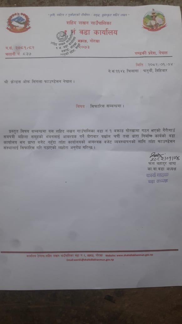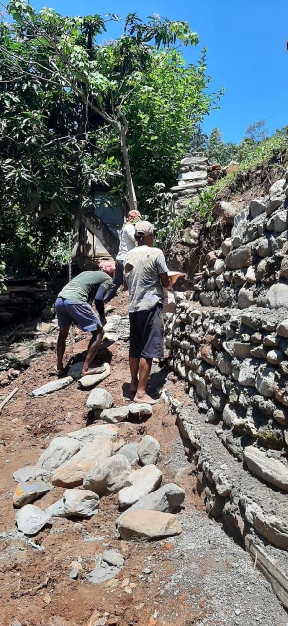 Mit unserer Stiftung unterstützen wir nicht nur die Kinder im Haus, sondern finanzieren auch immer wieder Kleinprojekte rund um FOS. Som Bahadur organisiert mit seinem Team die Materialbeschaffung, den Transport in diese Gorkha Region. Gemeinsam mit einer Delagation aus der Ortschaft wird das Material unter Aufsicht verteilt.
